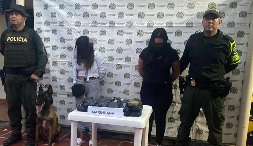Curumaní, Cesar. En un operativo coordinado entre la Seccional de Tránsito y Transporte y la Seccional de Carabineros y Protección Ambiental, dos mujeres fueron capturadas cuando viajaban como pasajeras en un bus que cubría la ruta Cali-Barranquilla. El hallazgo se dio gracias a un registro realizado por un canino de detección de narcóticos, quien alertó a los uniformados sobre la presencia de 24 paquetes rectangulares en el equipaje de las mujeres.
