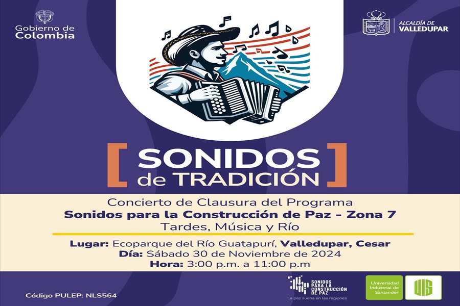 La capital del Cesar será el epicentro de la clausura del Programa Presidencial Sonidos para la Construcción de Paz (PSCP), una iniciativa del Gobierno Nacional en colaboración con la Universidad Industrial de Santander (UIS). Este evento, que promueve la música como herramienta de reconciliación, se llevará a cabo en el emblemático Ecoparque del Río Guatapurí este sábado 30 de noviembre, desde las 3:00 p. m. hasta las 11:00 p. m.