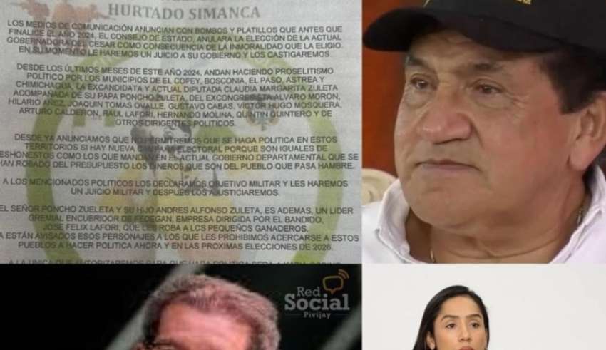 Valledupar, 5 de noviembre de 2024. Valledupar enfrenta una alerta que ha encendido las alarmas de la comunidad y el gobierno, luego de que se conociera una grave amenaza dirigida contra el cantante vallenato Poncho Zuleta y sus hijos, la diputada Claudia Margarita Zuleta y Andrés Alfonso Zuleta. En la lista también figura josé félix lafaurie, actual negociador del gobierno con el ELN, lo que ha generado preocupación y urgencia por aclarar la situación.