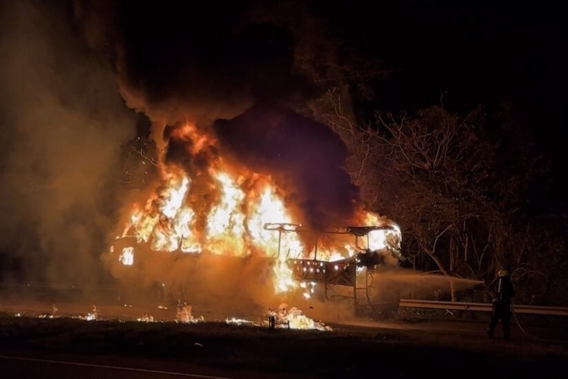 Bosconia, febrero 5 de 2026. Un bus de la empresa Expreso Brasilia se incendió en la vía que comunica a Valledupar con Bosconia, en el departamento del Cesar, generando momentos de pánico entre los pasajeros que viajaban a bordo.